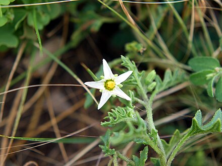Листья глубоко лопастные, могут быть с коротким опушением. Цветки напоминают картофель и томат, маленькие, с белыми лепестками и несколько увеличенной чашечкой, расположены группами по три. Плоды зеленые. Паслен Cutleaf произрастает в Северной Америке к востоку от Каскадных гор до Великих равнин и является сорняком пустырей и возделываемых полей. Растение содержит токсичные алкалоиды. Паслен чернолистный устойчив ко многим широко применяемым гербицидам.