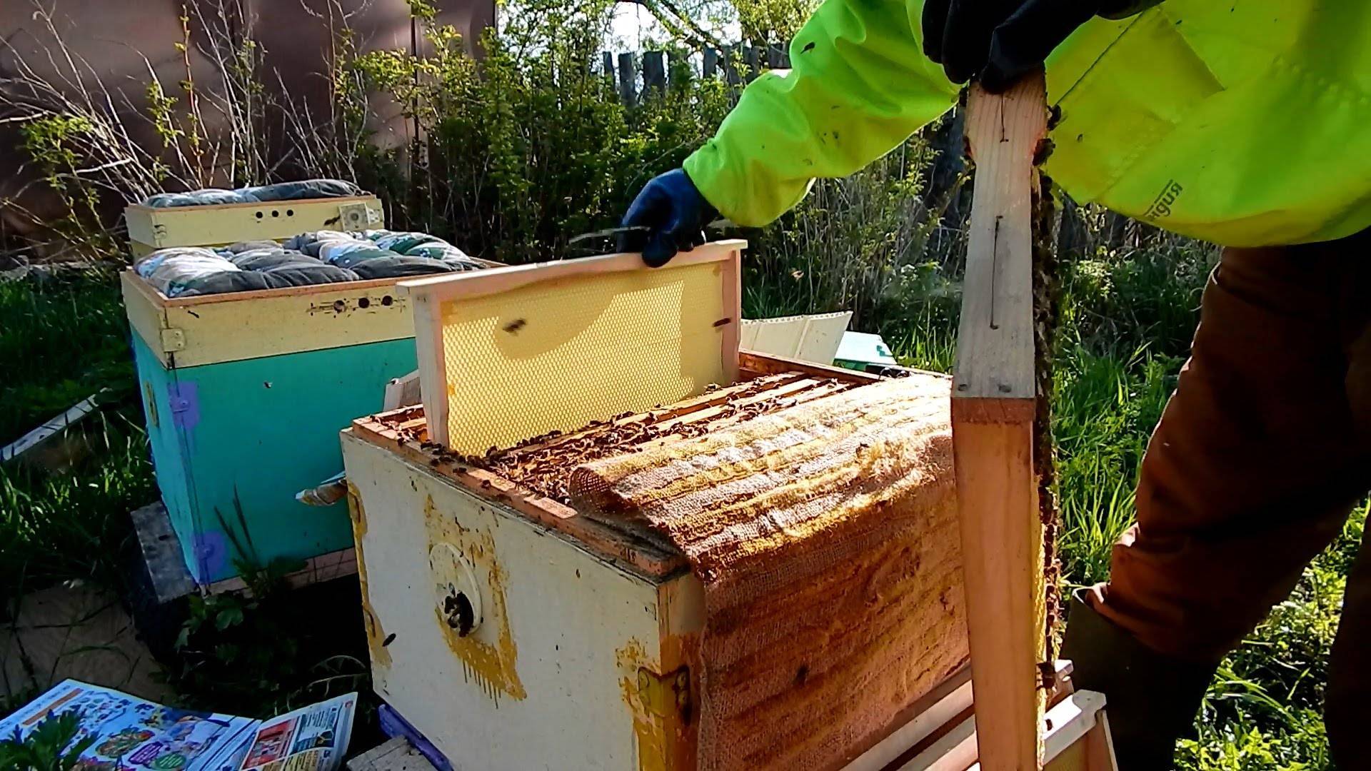Пчелы в порядке. И знать не знает, что пока он втыкал в гнездо рамку, нечаянно раздавил матку.