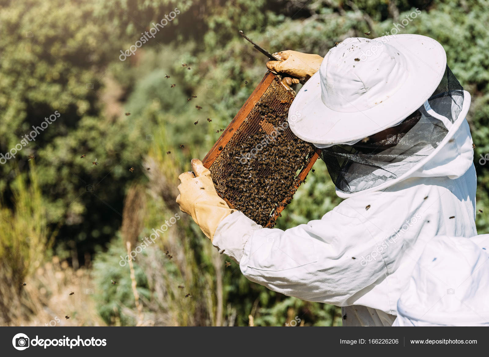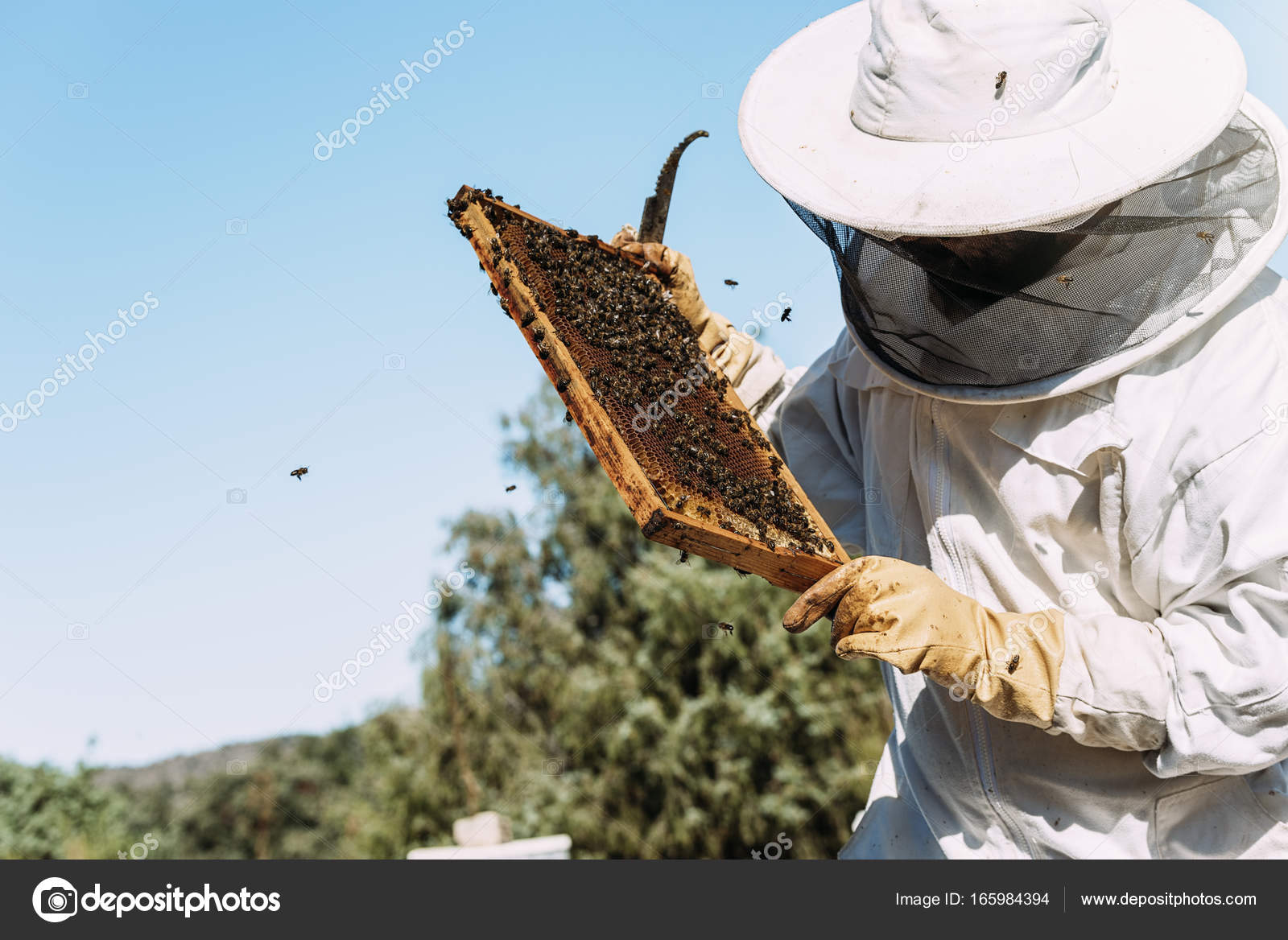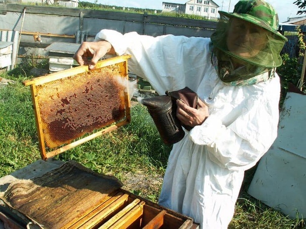 «Пчелы — прекрасные насекомые, но иногда они могут ужалить, если напуганы, поэтому пчеловодам приходится носить специальную одежду, чтобы защитить себя».