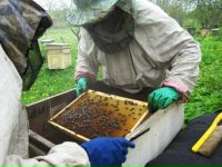 Ян использует средство, называемое курильщиком, чтобы пчелы чувствовали себя спокойными и сонными, чтобы они не испугались, когда улей открыт. Уильям и Ян не хотят, чтобы их ужалили. Йен открывает верхнюю часть лука, поднимая каждый слой и добавляя еще дыма, чтобы пчелы успокоились. В улье тысячи пчел ».