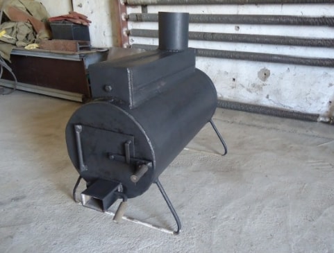 В верхнем отсеке буржуйки находится дымоход. Можно выбрать любые форму, размер буржуйки. Главное соблюдать выше описанные принципы. Часто для изготовления буржуек берут старые бочки из металлического листа. Некоторые мастера отказываются от изготовления раздельных дверец. Они делают одну большую. Поверх такой бочки наваривают металлический лист. Получается плита для приготовления пищи. Такая конструкция интересная, но не долговечная конструкция.
