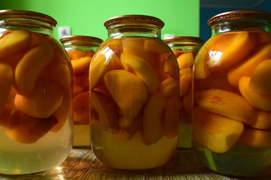 Персиковый компот, консервированный по всем правилам, можно хранить год при комнатной температуре.