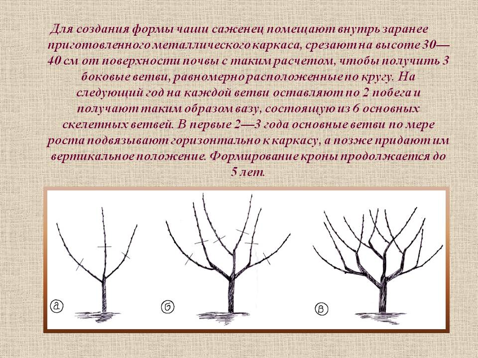 Крона в виде «вазы» формируется в течение 3-4 лет пошагово.