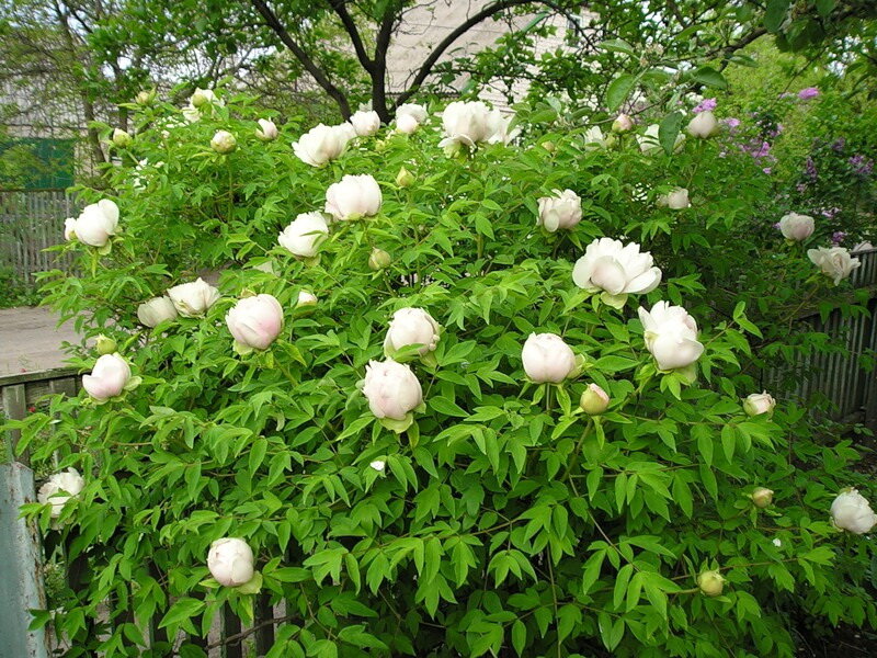 Кроме того, помогают различные “шумелки”, создающие вибрацию в почве. Подойдет врытый в землю металлический прут с надетой сверху металлической банкой или пропеллером.Уход за древовидными пионами такой же, как и за травянистыми. Первую подкормку хорошо внести по талому снегу, вторую – после цветения по диаметру приствольного круга. Со второй половины июля подкормки прекращаем, чтобы растение постепенно переходило в состояние покоя. Особенно это важно гибридам пиона жёлтого (P. lutea), которые склонны к ремонтантному цветению.