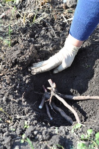 От возвратных заморозков защищают небольшим слоем опилок, вермикулита, торфа. 2 раза с интервалом в 14 дней саженцы поливают раствором Корневина (10 г на 10 л воды), а когда побеги начнут прорастать, освобождают их от мульчи.