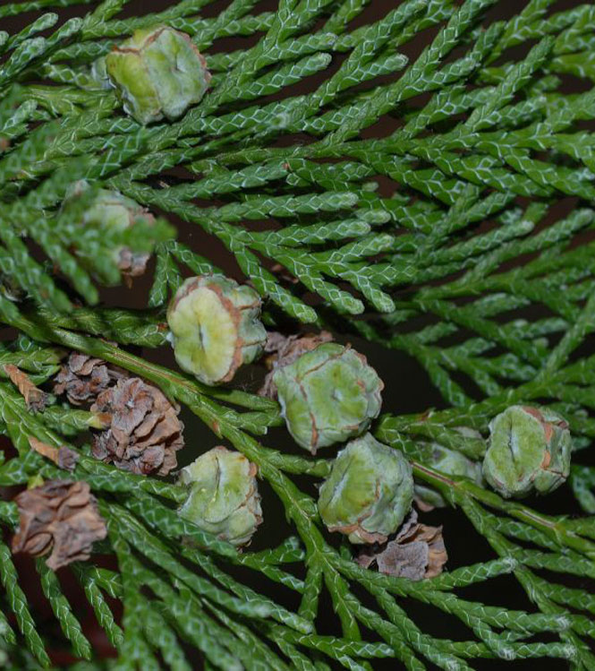 Взрослые растения с хвоей в форме чешуи.