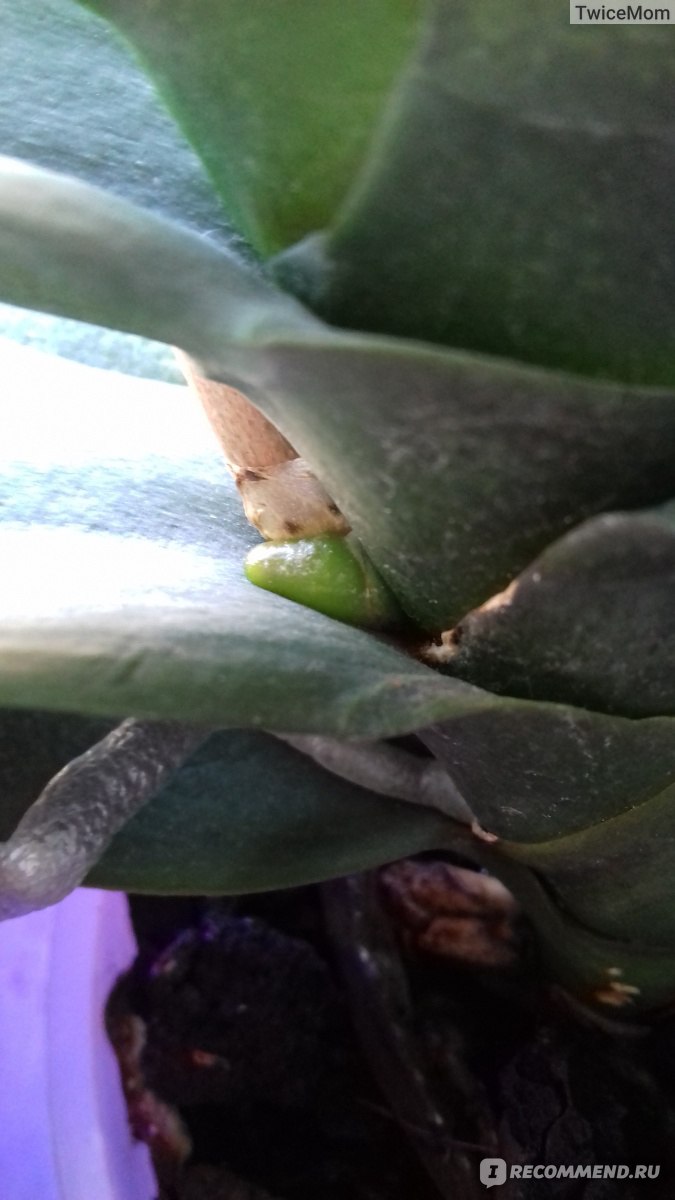- Развитие цветоноса. После того как начался рост листьев, необходимо следить за растением внимательно. В это время зарождается не только цветонос, но и почки, от здоровья которых зависит качество цветения. В период формирования цветоноса важен правильный уход, и он заключается в подкормке. Для орхидей подойдут калийные удобрения, но категорически не подходят составы с азотом.