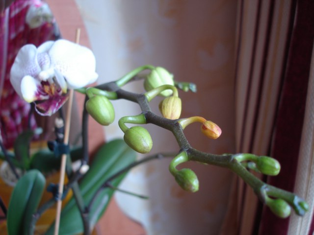 Некоторые орхидеи, такие как фаленопсис, могут выпускать цветочные почки на старом цветоносе повторно.