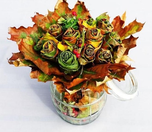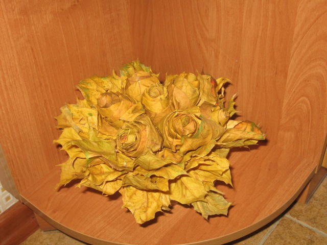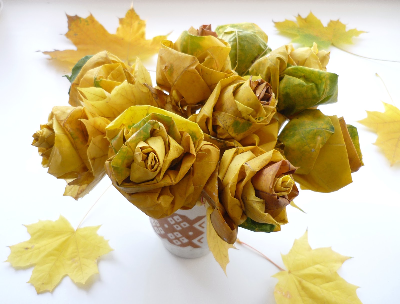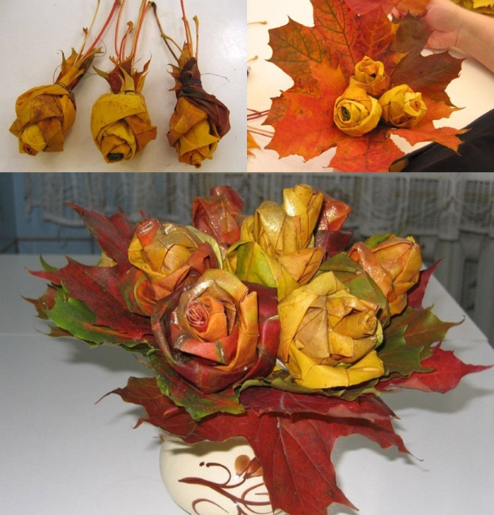 Учебное пособие по натуральному и вторичному использованию: букет роз из кленовых листьев — идеи поделок