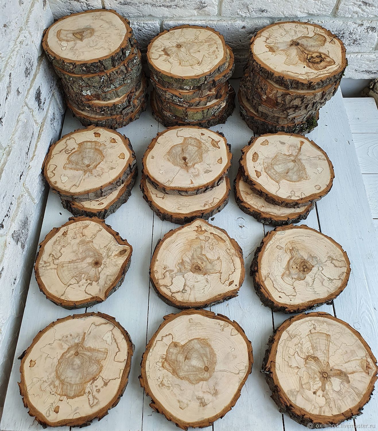 Нарезанные срезы деревьев могут быть использованы в качестве заготовок для дальнейшего творчества. Из них очень удачно получаются разнообразные игрушки и фигурки зверей (всевозможные лисы, уточки, медведи, собаки, птицы).