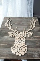 Этот вид декора делают из веток небольшого диаметра, нарезанных шириной в 1-1,5 см.на одну или несколько сторон можно нанести рисунок контрастной краской. Например, буквы, при помощи можно «написать» поздравление или название праздника.