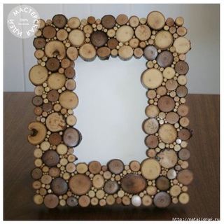 Спил дерева также используют для изготовления рам. Такой вариант работы станет украшением дизайна в стиле кантри, эко и модерн. Чтобы выполнить ее необходимо: