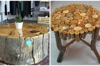 Мебель выглядит совершенно по-разному, в зависимости от вида имеющегося сырья. Делаются столы и стулья, так как силуэт самого спила уже напоминает небольшой столик или стул.