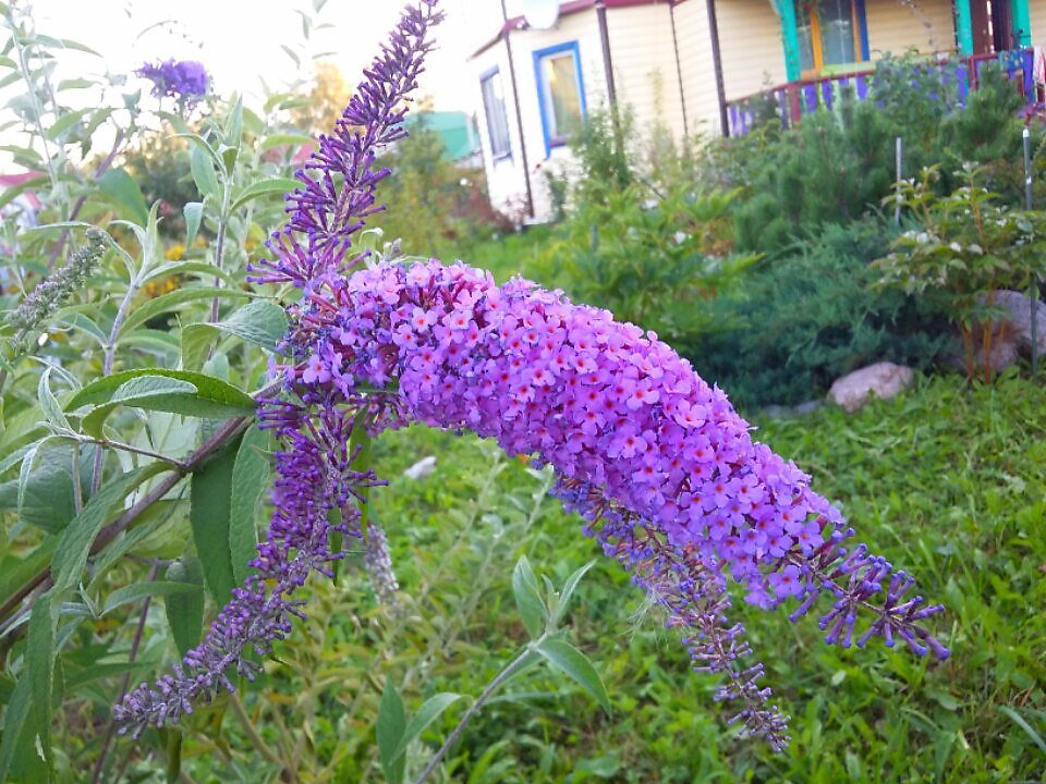 Цветки пурпурные с апельсиновым глазком, собранные в соцветия 30-50 см. Цветет с июля по октябрь. - «Nanho Purple» — высота кустарника 1-2 м, ширина 2 м. Растет умеренно быстро, цветки пурпурно-красные.