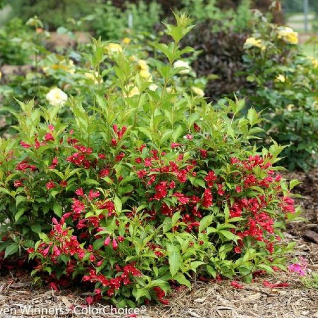 Что касается декоративности, то вейгела просто очаровательна: во время цветения она вся усыпана ароматными цветками. розового, белого, желтого или красного цвета.