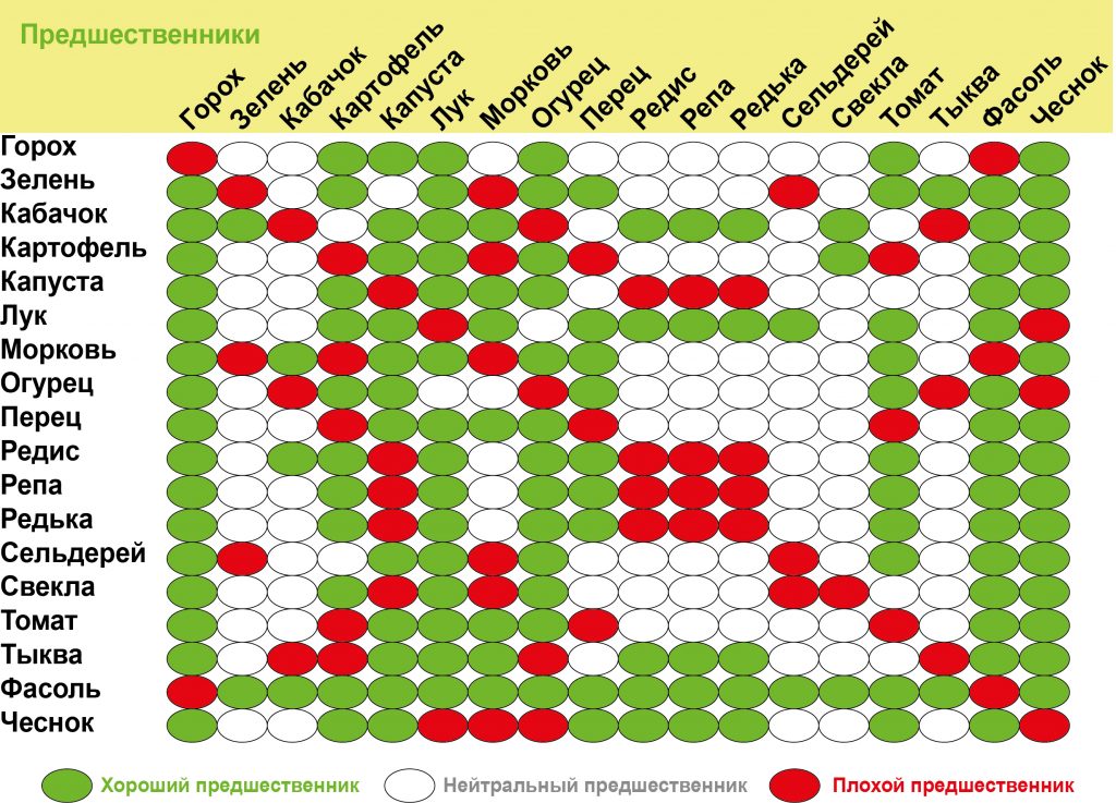 | Зелень | Тыква, картофель, бобовые | Морковь, свекла |