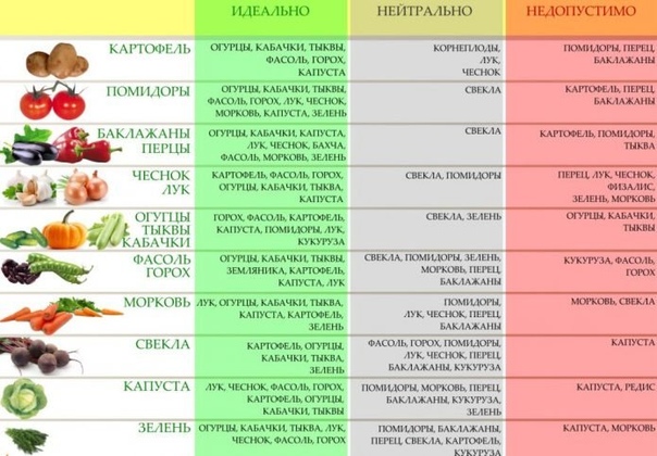 | Морковь | Томат, кабачки, картофель | Фасоль, петрушка |
