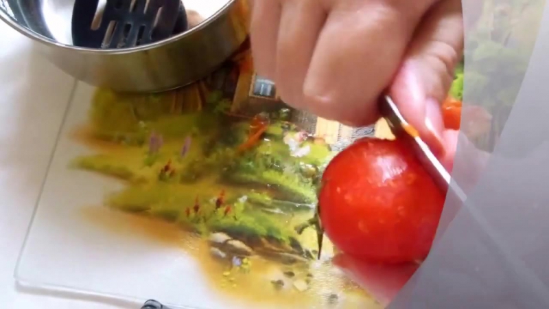 Нам нужны вкусные, спелые, мясистые помидоры. Моем их.