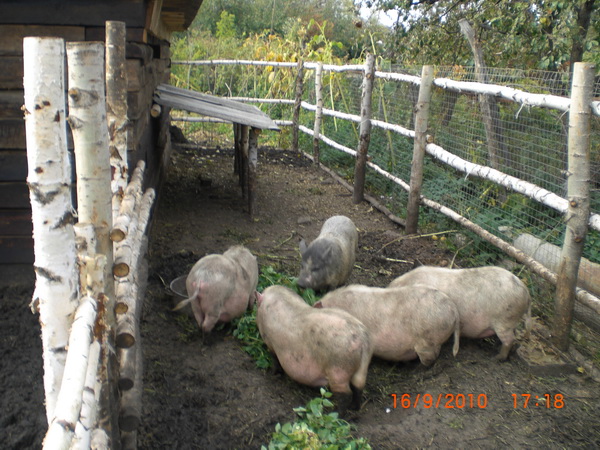 - Свинарник своими руками, можно построить самостоятельно на даче из большинства подручных средств, например шпал. Не следует экономить на стройматериалах – это приведет только к проблемам в будущем.
