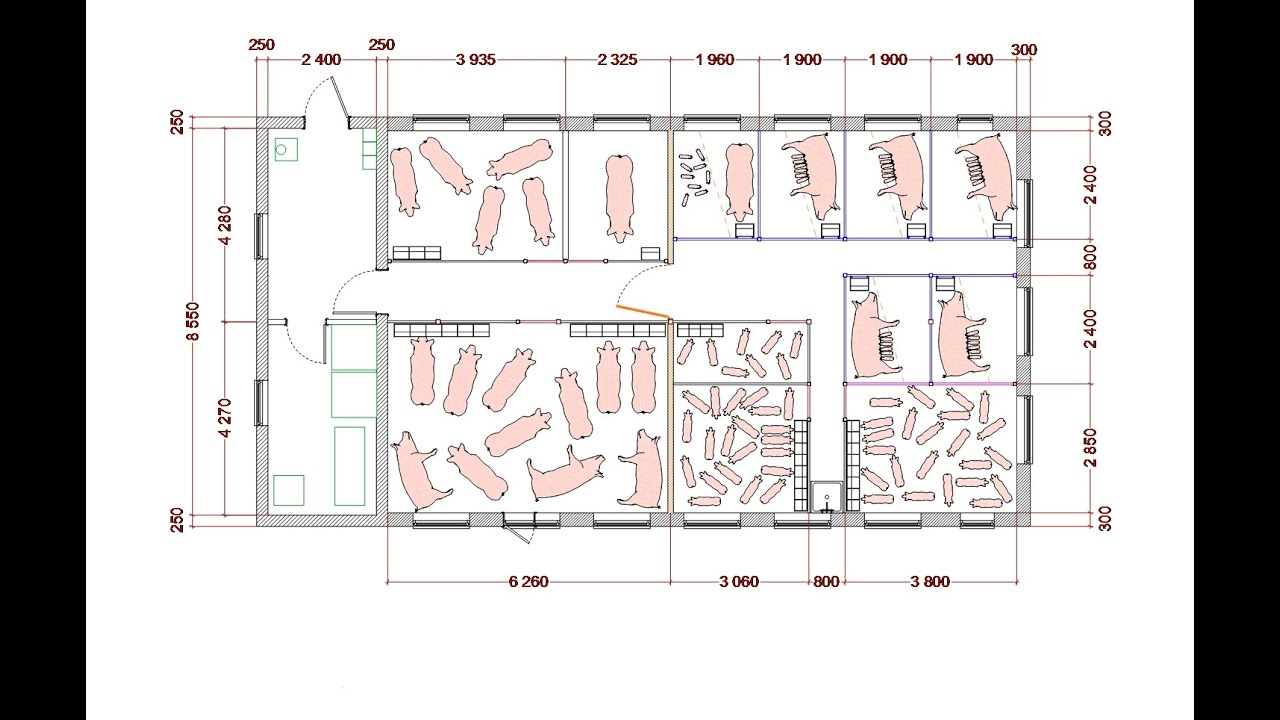 - Свинарник необходимо разделить на разные загоны для каждой фазы производственного цикла. Количество и размер загонов зависят от ожидаемого количества свиней, которые будут размещены на каждом этапе производства.