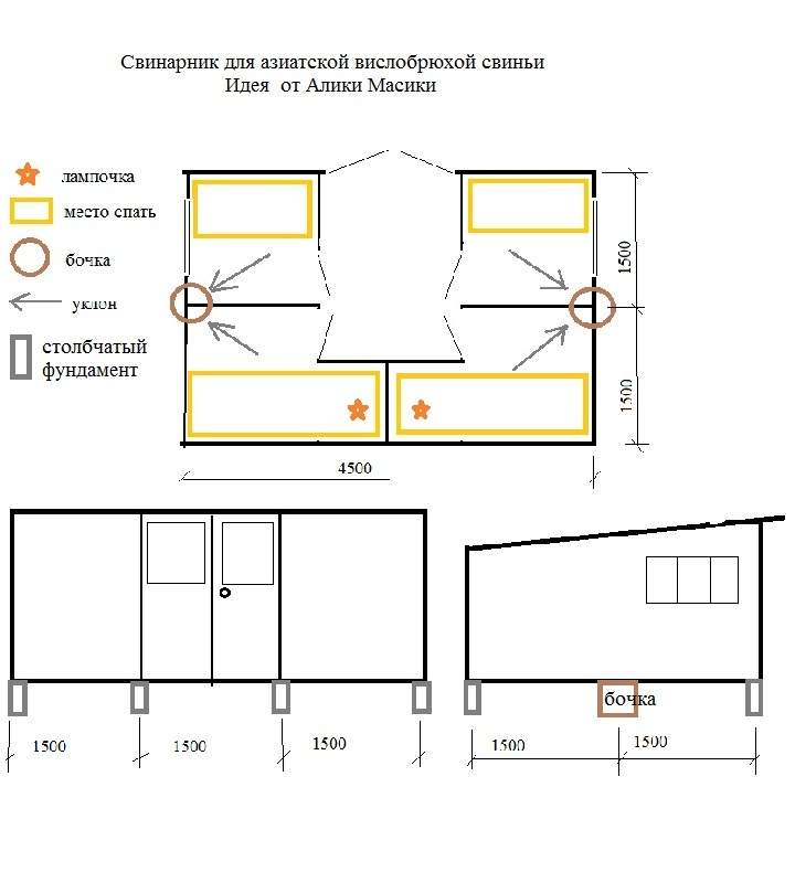 план сарая для свиней, строительство своими руками загона для поросят, проект на 100 голов