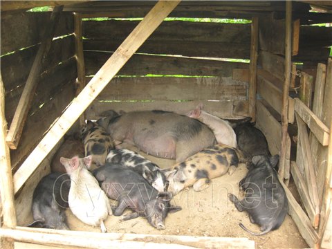 Сарай необходимо чистить по возможности как можно чаще, т.к. навоз от свиней выделяет много паров аммиака.