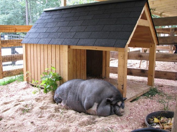 - Всё в постройке следует изготавливать из крепкого материала, способного выдержать мощь свиньи.