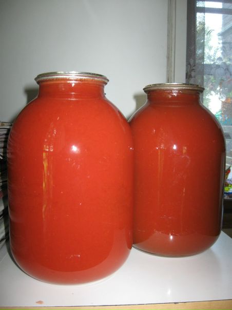 Имея закатки сока, зимой не придется покупать томат-пасту, а использовать домашнюю заготовку не только как напиток с мякотью, но и для заправки борщей, приготовления томатной подливки.