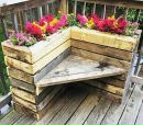 Необычной идеей станет сооружение скамьи из деревянных поддонов.