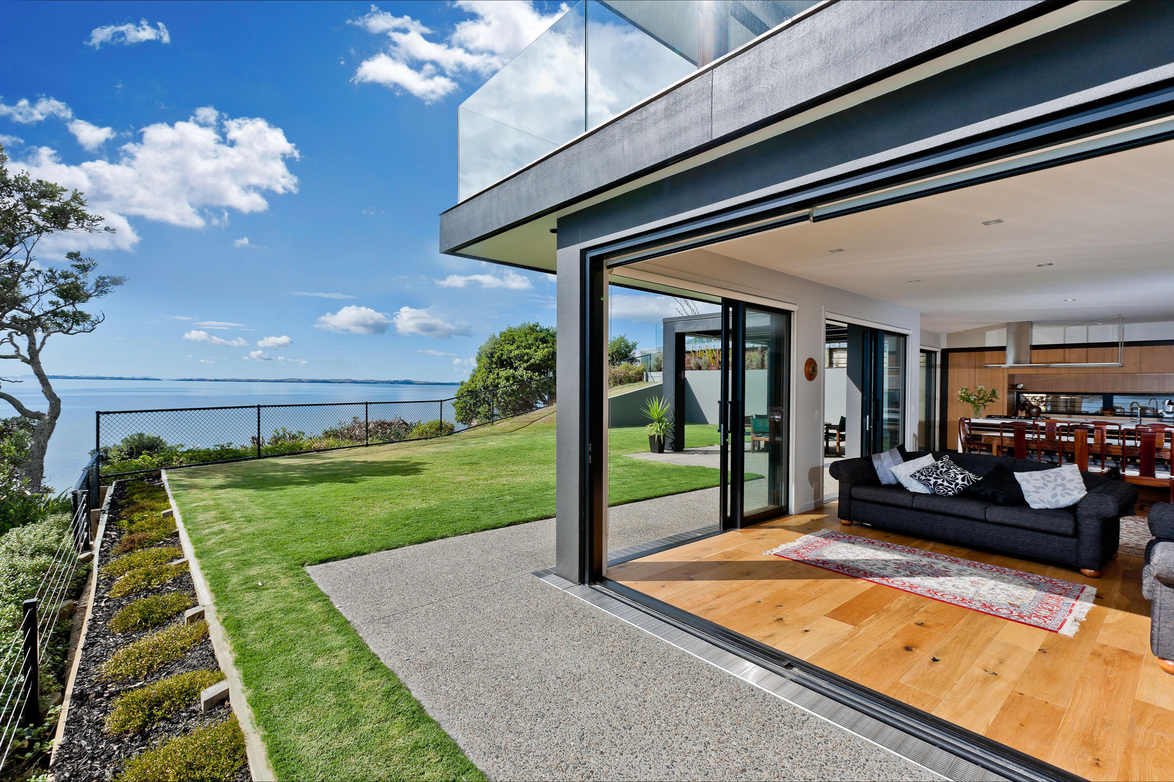 Привычная для южных городов концепция раздвижных стекляных дверей из гостиной, расположенной в центральной части дома, на террасу, находит все больший отклик у клиентов более суровой климатической зоны.