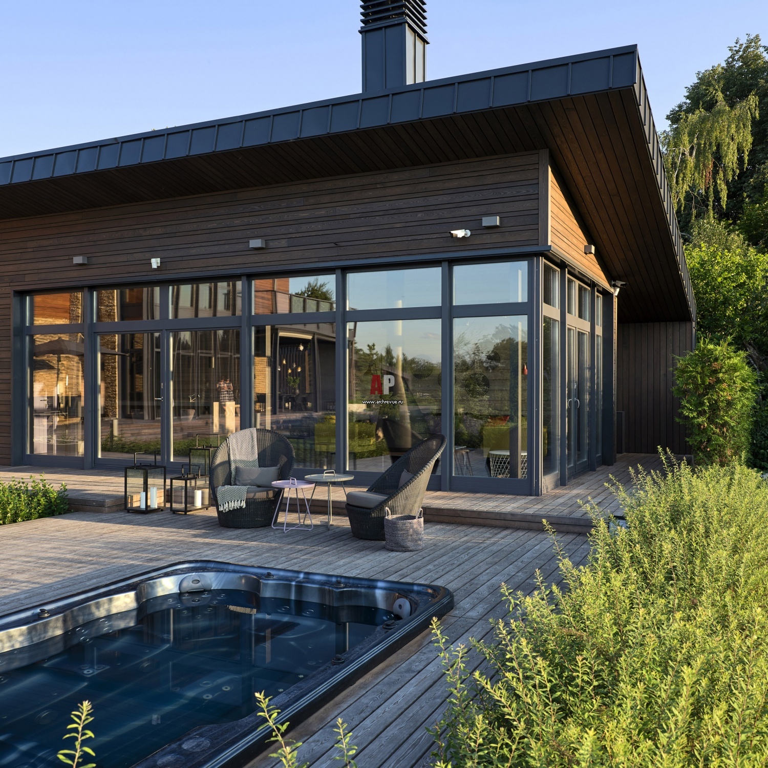 Скромное жилище S.темная крыша и панорамное окно