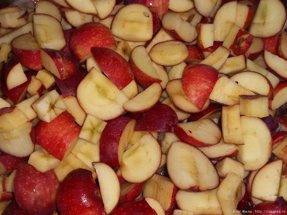 1. Первым делом начинаем с яблок. Моем их хорошо. Нарезаем их и вычищаем от семечек. Вы можете нарезать их по своему желание любой формы.