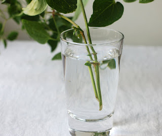 Удалите большую часть листьев. Поместите каждый конец обрезки в воду и отложите в сторону.