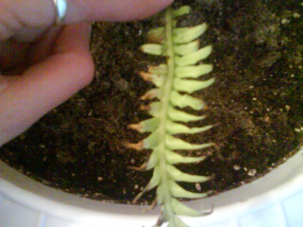 Лучше несколько раз подряд смочить из опрыскивателя землю, и потом несколько дней понемногу увлажнять грунт. Относитесь к папоротнику в этом случае, как к изголодавшемуся человеку, которого тоже начинают кормить понемногу.