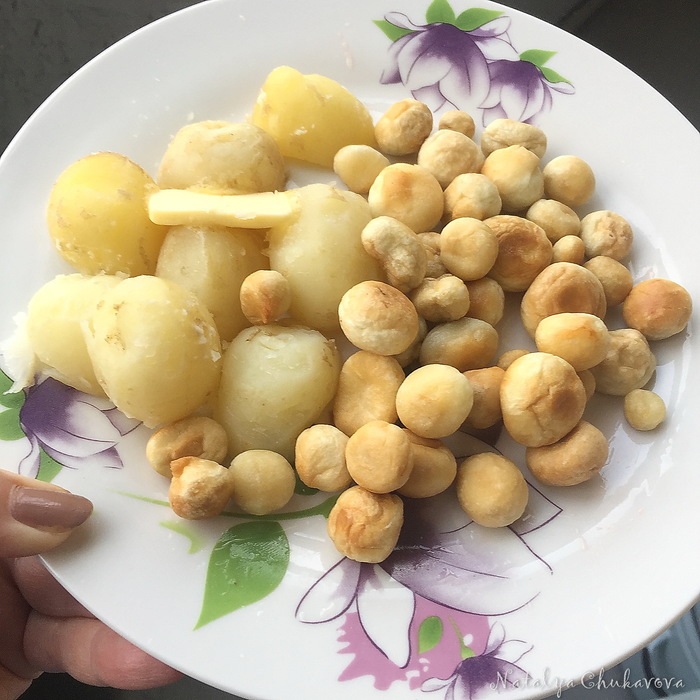 Честно говоря, никогда мы грибы дождевики не собирали и за нормальные грибы их не считали. А тут приехали в лес а там пусто, даже сыроежек нет, только эти белоснежные шарики из пожухлой листвы выглядывают. Ну что делать, набрали хотя бы их, а потом как посмотрела в интернете, так оказалось что гриб этот не только съедобный, но и очень полезный, его даже рекомендуют тем, кто в загрязненных областях живет, потому как всякую вредность из организма выводит.