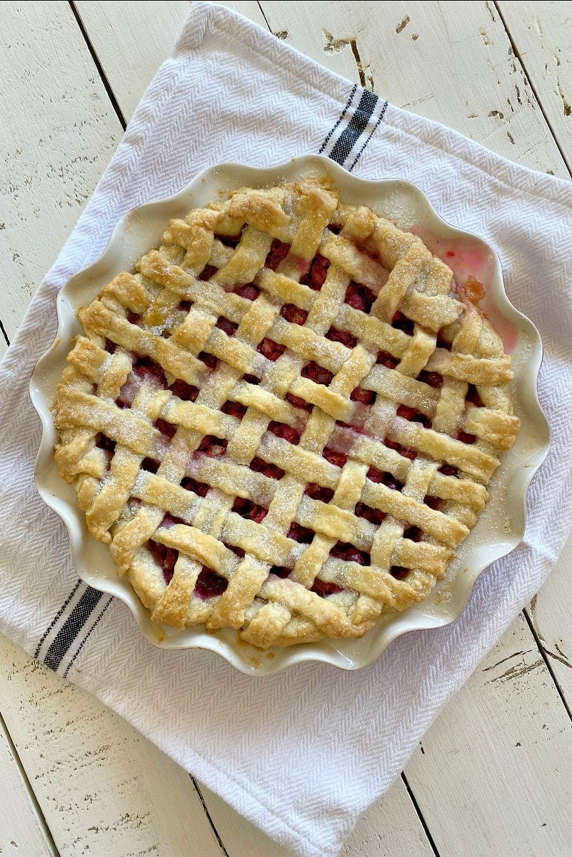 Рецепт полностью масляной корочки, включенный в рецепт, также взят из поваренной книги «Искусство пирога».Иногда я считаю, что у меня «проблемы с корочкой», и я обнаружил, что с этим рецептом корочки очень легко работать, а текстура и вкус тоже были хорошими. Одна из самых важных вещей при приготовлении корочки — это дать тесту время остыть перед раскатыванием. Не торопитесь! Если вы будете следовать инструкциям в том виде, в каком они написаны, скорее всего, у вас все получится. Вы можете сделать решетку для пирога или традиционную верхнюю корочку с отверстиями. Тебе решать!