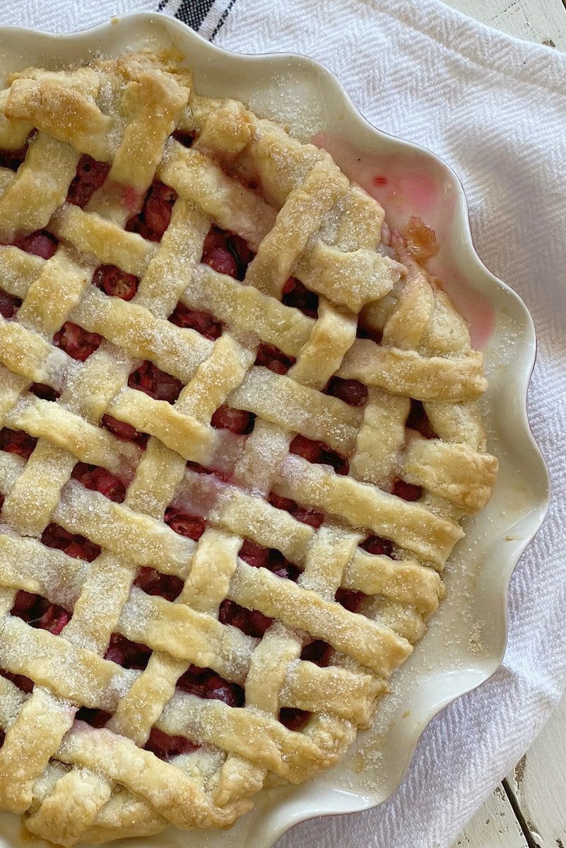 Если вы любитель клюквенного соуса, то этот пирог вам очень понравится. Это очень похоже на пирог со свежей клюквой, и у него маслянистая и слоистая корочка. Это не очень распространенный пирог, но его определенно стоит рассмотреть, если осенью у вас есть свежая клюква.