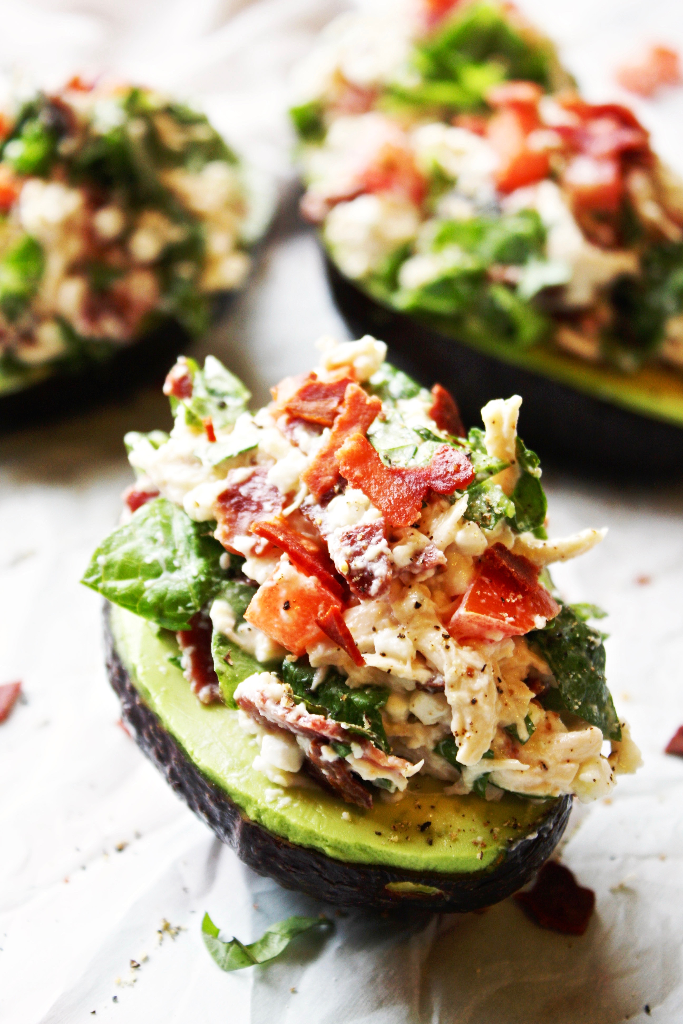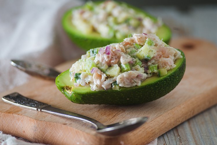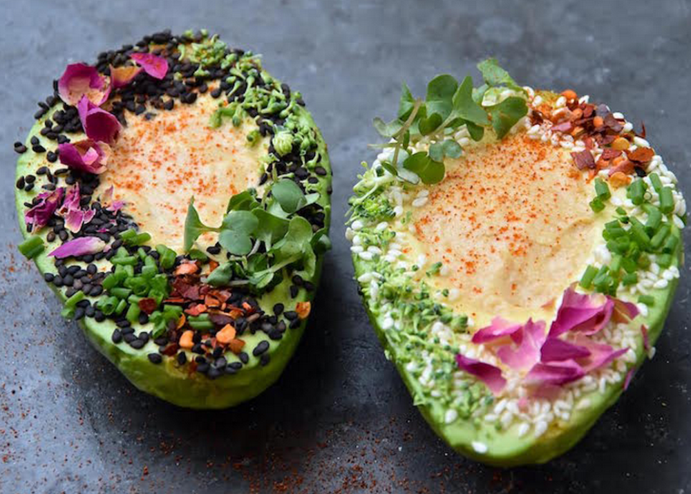 Представьте ваш любимый японский ролл… но в виде начинки для авокадо. Покройте внешнюю половинку авокадо поджаристым черным кунжутом и выложите внутрь салат поке из лосося с чили и чесноком. Для дополнительной остроты посыпьте ломтиками редиса и зеленым луком.