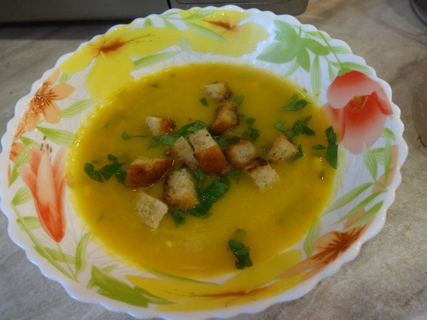 Пока варился сок, приготовила вкусный тыквенный супчик-пюре.