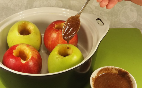 - Заполняем яблоки начинкой.