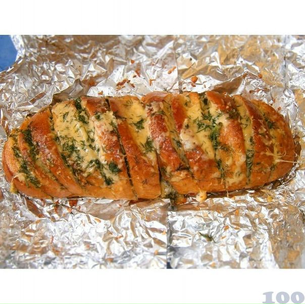 - Хлеб нарезается ломтиками, толщиной до 1 см. Обжаривается с каждой из сторон.