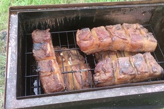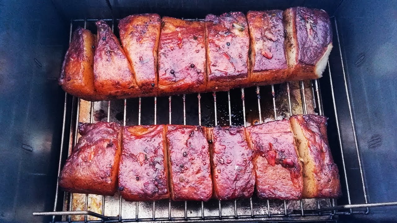 Коптите около 3 часов или пока внутренняя температура бекона не достигнет 160°F. В зависимости от размера свиной грудинки это может занять больше или меньше времени.