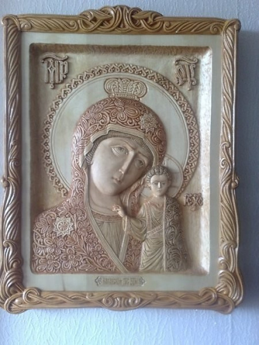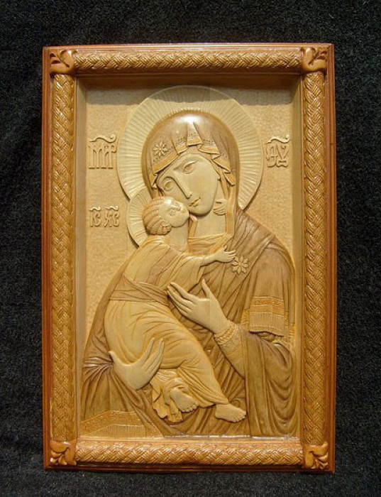 На Руси техника изготовления икон называлась «иконы на рези». Резные иконы могут быть разрисованными, покрытыми морилкой, лаком. Резчик — тот же художник, так что каждая икона изготовлена в единственном экземпляре и не может быть растиражирована. Это придает резной иконе особенное и значения. Дерево само по себе излучает хорошую энергетику и тепло.Так же такую же икону можно освятить в Храме. Священники утверждают, что в каждом доме должна быть икона Спасителя и Божией Матери.