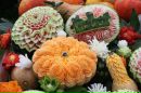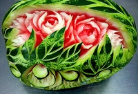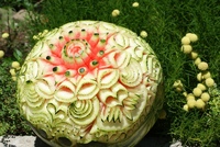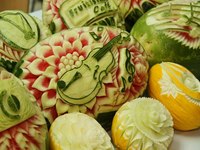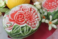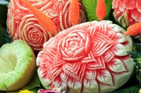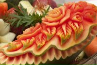 Вот именно с этой целью и возник карвинг из овощей и фруктов, для начинающих мастеров которого мастер-классы в наше время проводятся по всему земному шару. Конечно, мастера каждой страны внесли в это искусство свои особенности. Так, например, мастера Таиланда предпочитают вырезать цветочные композиции, а китайцы и японцы изображают, как правило, драконов и иероглифы. Они используют для этого специальные трафареты и выемки, но их результаты не так изящны, как ручная работа мастеров Таиланда. Чтобы освоить карвинг для начинающих, мастер-класс следует выбирать попроще, например, из китайской техники. А через некоторое время можно пробовать и более сложные варианты.
