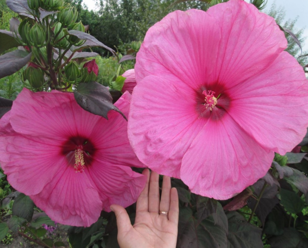 «Розовый гигант» с очень крупными темно-розовыми цветками.