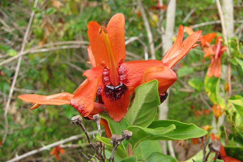 Руэллия Крупноцветковая (Ruellia Macrantha). Выращивается, в основном, в оранжереях и зимних садах, потому что является крупным кустом до 2 метров в высоту. Листья ланцетовидные, сильно зауженные у основания и кончика. Цветы розового или пурпурного цвета, длиной 12 см и 8 см в диаметре, напоминают колокольчик. Цветет Руэллия Крупноцветковая с начала осени до начала зимы.