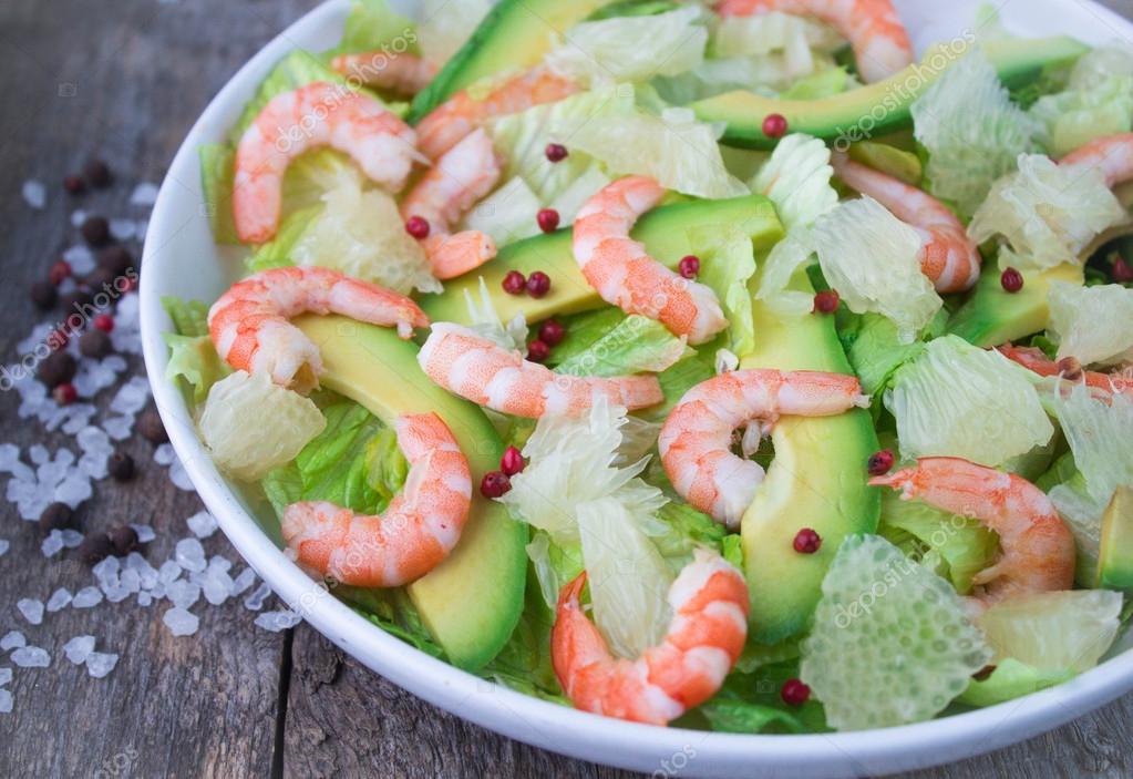 Креветки поддерживают работу щитовидной железы, улучшают остроту зрения и являются продуктом диетпитания, поскольку позволяют худеть, не испытывая изнуряющего чувства голода. Авокадо содержит витамины А, В, С, Е, цинк и многие другие полезных микроэлементов.