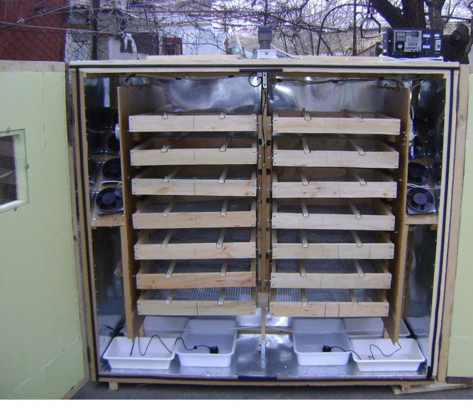 Особенности созданияДовольно многие птицеводы используют инкубаторы заводского производства , приобрести которые, конечно, можно, но это обойдется значительно дороже, чем если вы будете изготавливать подобную конструкцию самостоятельно.Каркас данной установки изготовлен из деревянных брусков, обшивка снаружи может быть произведена фанерой. Для утепления допустимо использовать пенопласт. Под потолком в центре нужно расположить ось, на которой плотно зафиксировать лоток, предназначенный для яиц. На оси посредством стального штыря, который должен быть выведен через верхнюю панель, можно будет повороты лотка с яйцами.