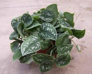 Большие листья в форме сердца темно-зеленого цвета с серебристо-серыми пятнами, придающими им атласный блеск. Его компактный рост делает Scindapsus pictus ‘Argyraeus’ красивым висячим корзиночным растением.