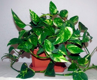 В комнатных условиях сциндапсус является лазающим растением, обладающим декоративной пестрой либо насыщенно-зеленой листвой, которая схожа с листьями части видов филодендрона. Листовые пластины у него очереднорасположенные простые глянцевые и кожистые, форма у них овальная. Во время цветения формируется маленькое соцветие внешне схожее с початком кукурузы, который обернут прилистником, как покрывалом. Однако выращиваемая в домашних условиях лиана цветет крайне редко, но зато она нетребовательна в уходе.
